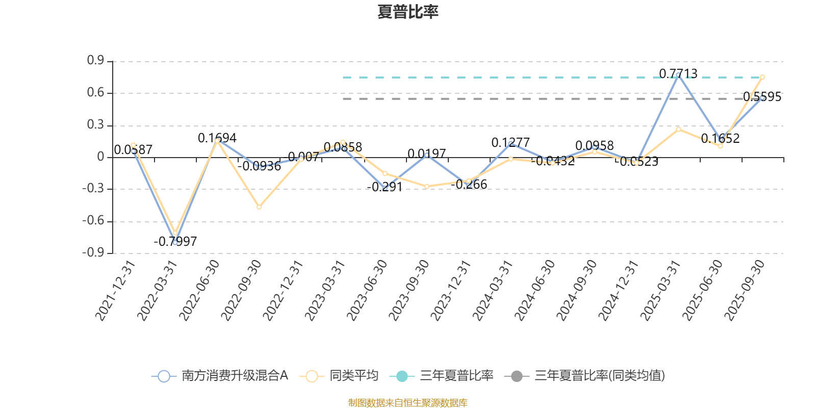 截至9月30日,基金近三年夏普比率为0.7472,位于同类可比基金63/252。
