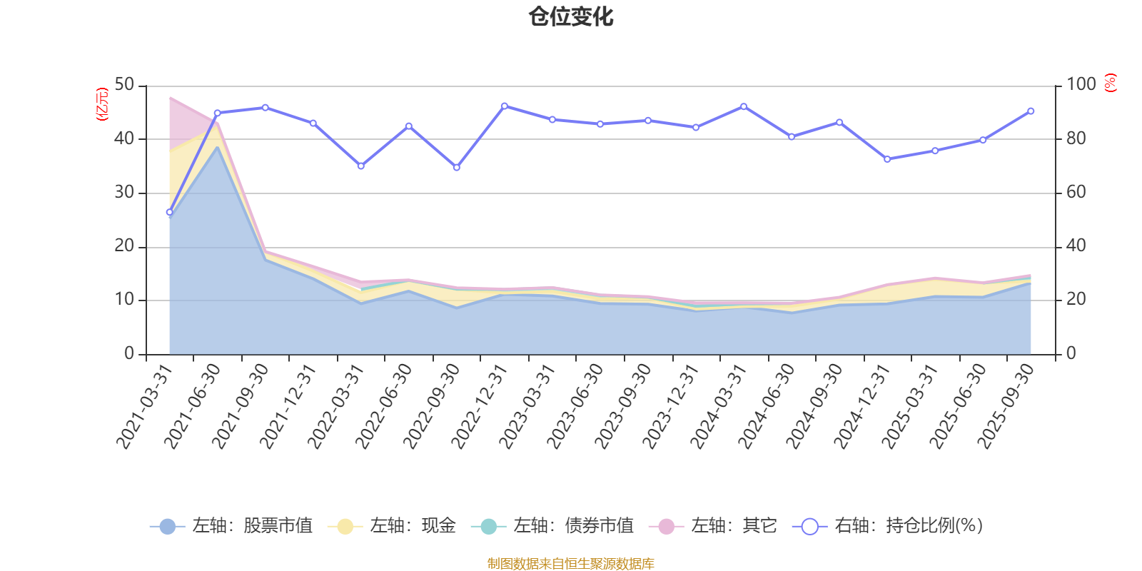 据定期报告数据统计,近三年平均股票仓位为84.62%,同类平均为85.99%。2022年末基金达到92.42%的最高仓位,2021年一季度末最低,为52.94%。