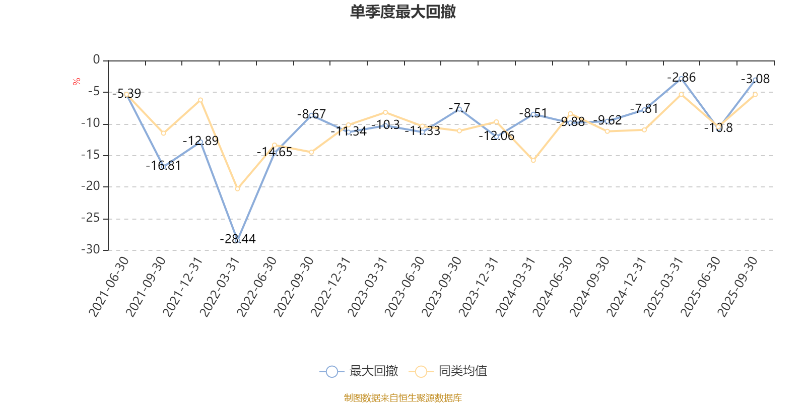 截至10月29日,基金近三年最大回撤为27.05%,同类可比基金排名49/251。单季度最大回撤出现在2022年一季度,为28.44%。
