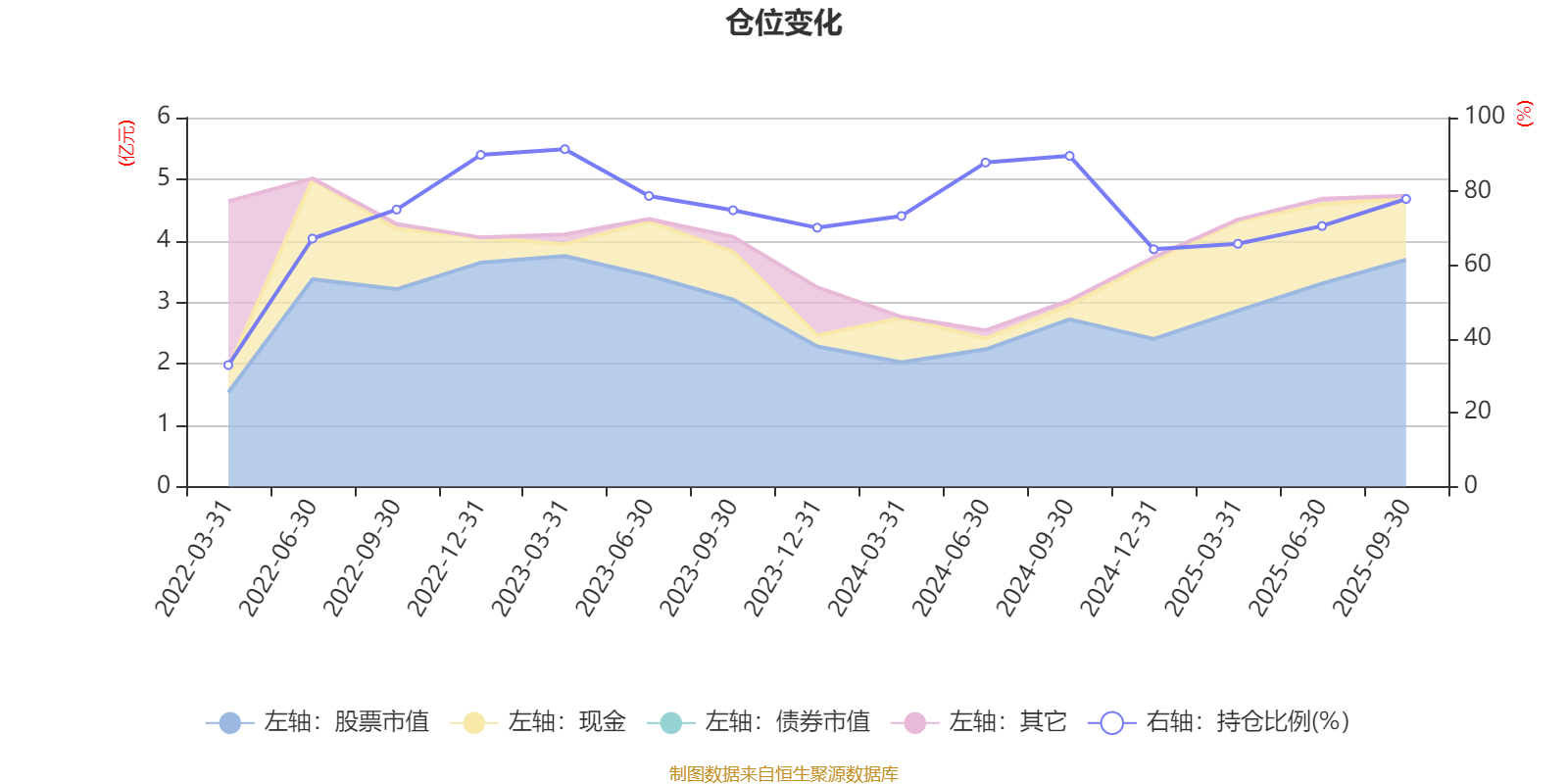 据定期报告数据统计,近三年平均股票仓位为77.88%,同类平均为85.66%。2023年一季度末基金达到91.45%的最高仓位,2022年一季度末最低,为32.93%。