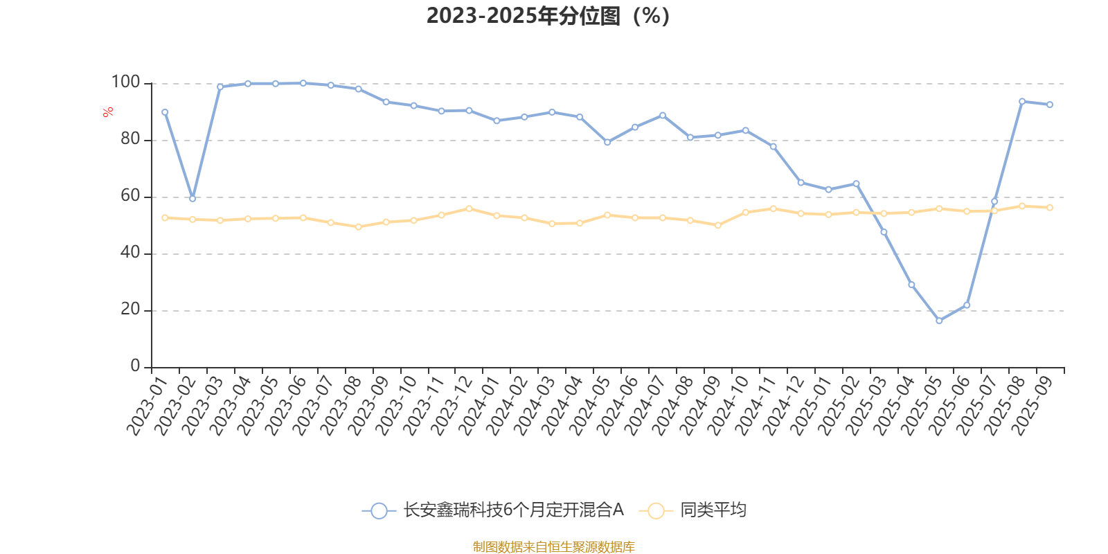 通过所选区间该基金净值增长率分位图,可以观察该基金与同类基金业绩比较情况。图为坐标原点到区间内某时点的净值增长率在同类基金中的分位数。