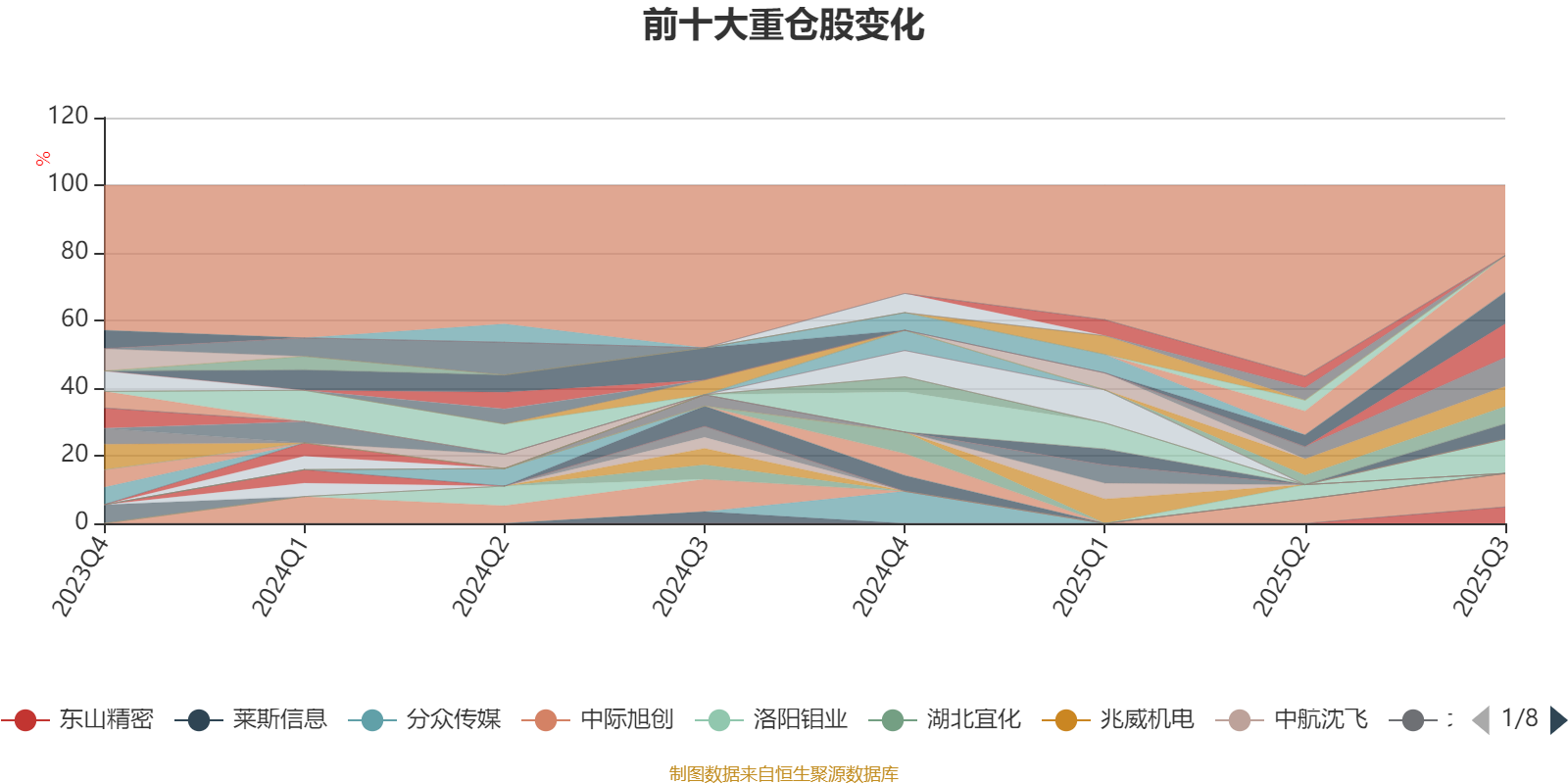 截至2025年三季度末,基金十大重仓股分别是新易盛、寒武纪、工业富联、中际旭创、天孚通信、胜宏科技、沪电股份、英维克、东山精密、源杰科技。