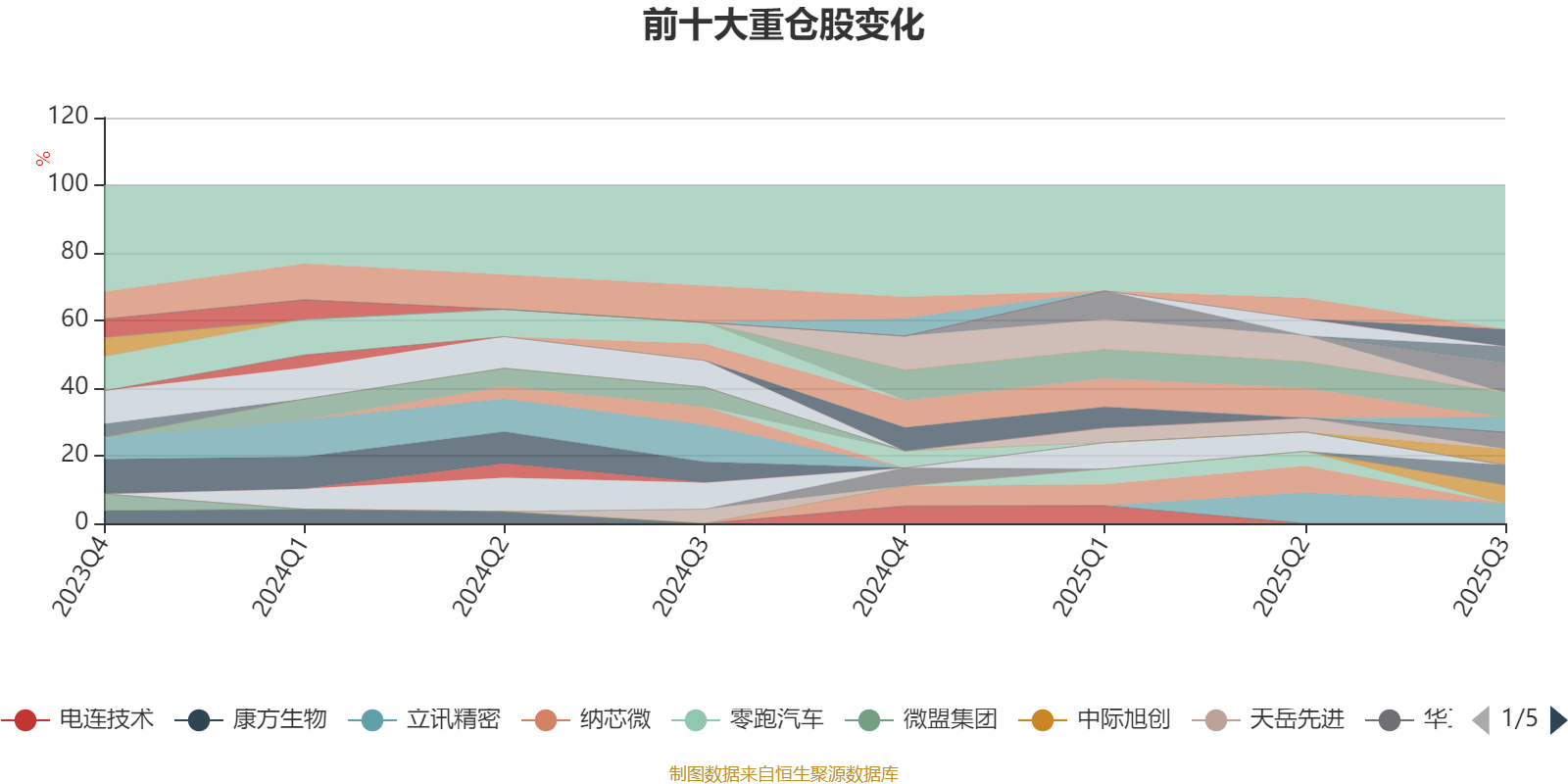 该基金持股集中度较高。截至2025年三季度末,基金十大重仓股分别是阿里巴巴-W、中芯国际、中微公司、立讯精密、中际旭创、新易盛、澜起科技、天孚通信、寒武纪、地平线机器人-W。