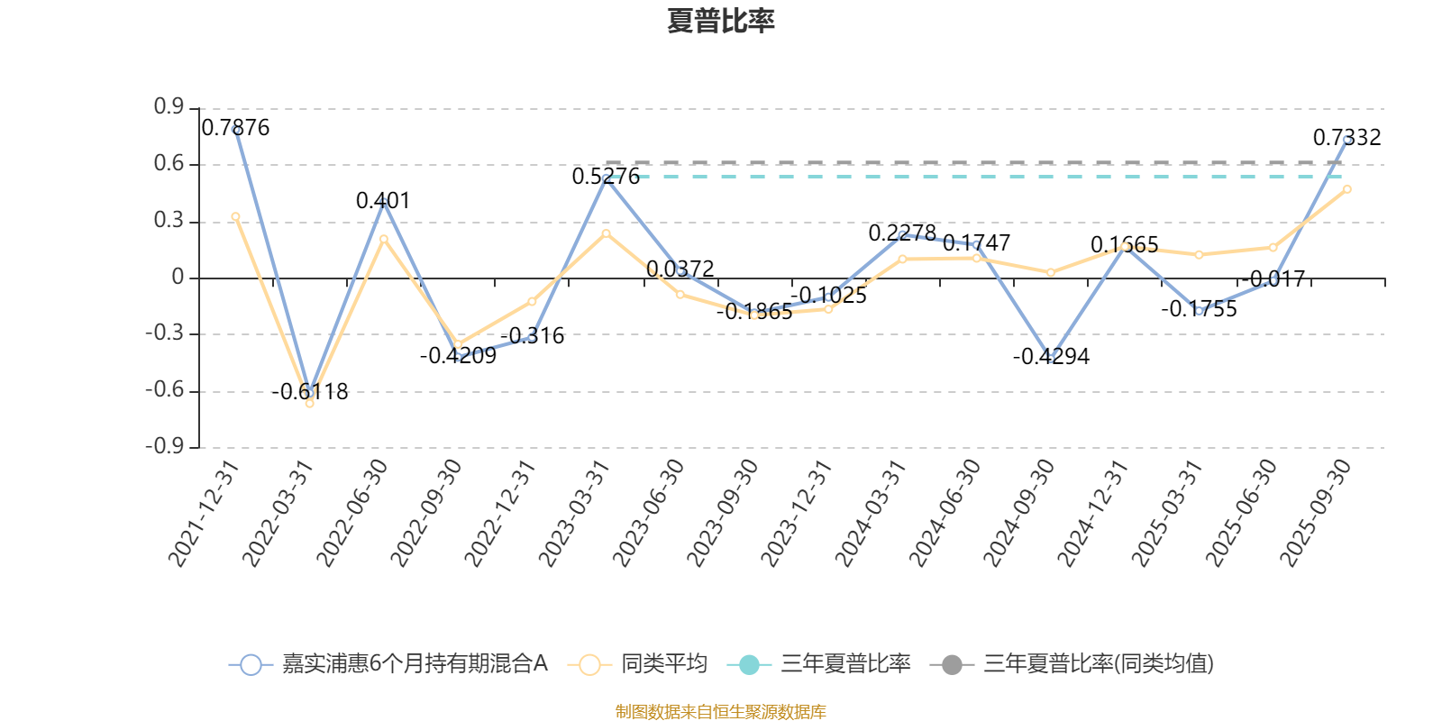 截至9月30日,基金近三年夏普比率为0.5369,位于同类可比基金355/553。