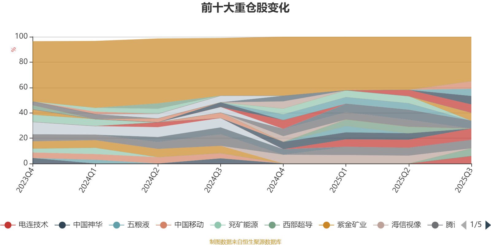 截至2025年三季度末,基金十大重仓股分别是招金矿业、腾讯控股、华虹半导体、阿里巴巴-W、思特威、建设银行、西部超导、山东黄金、电连技术、金蝶国际。