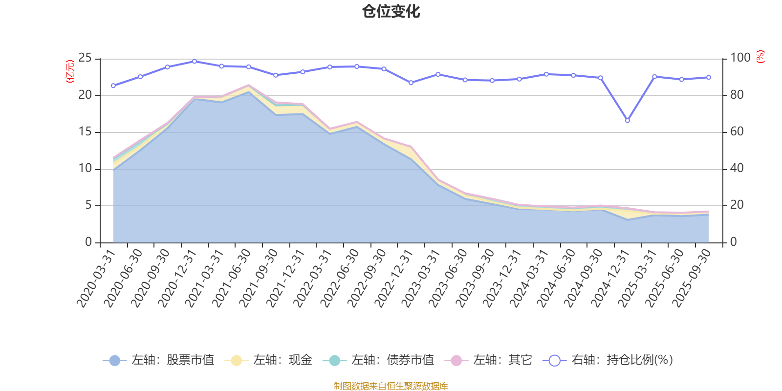 据定期报告数据统计,近三年平均股票仓位为87.59%,同类平均为85.66%。2020年末基金达到98.56%的最高仓位,2024年末最低,为66.39%。