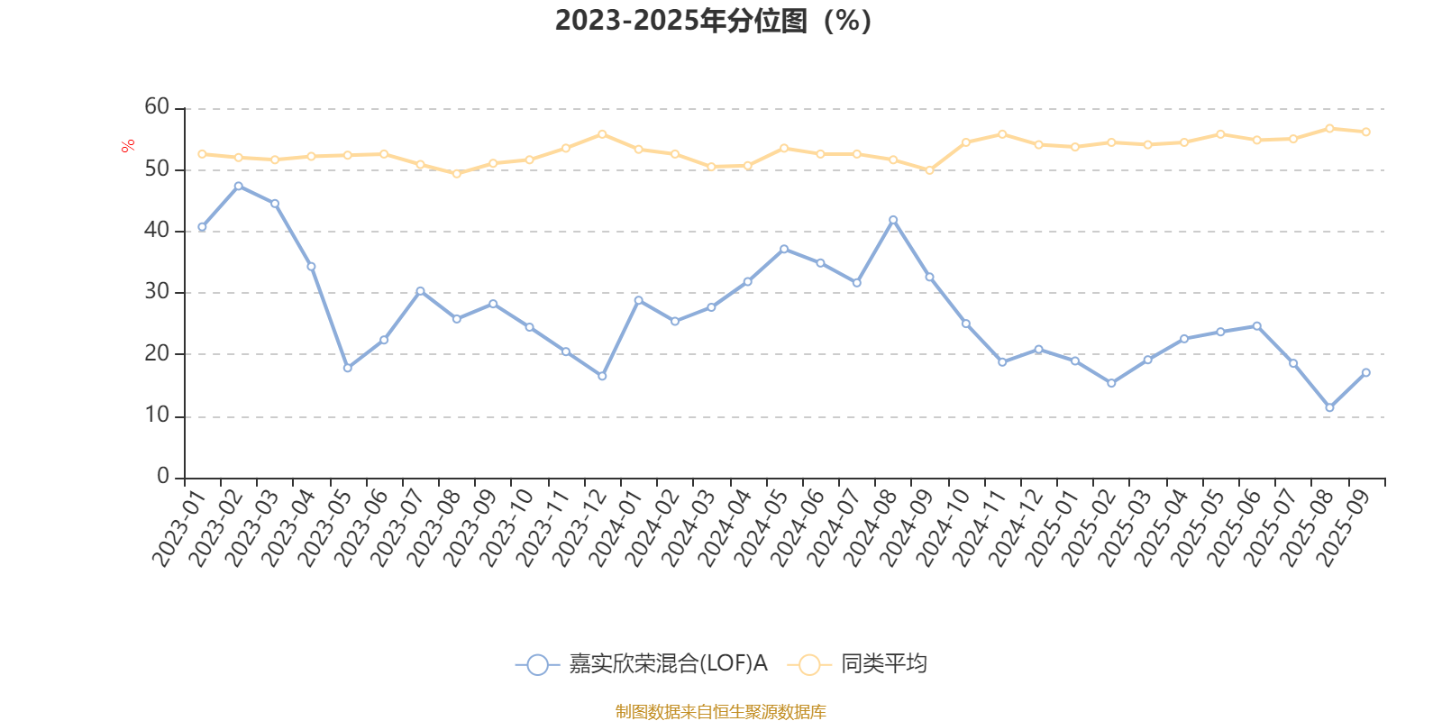 通过所选区间该基金净值增长率分位图,可以观察该基金与同类基金业绩比较情况。图为坐标原点到区间内某时点的净值增长率在同类基金中的分位数。
