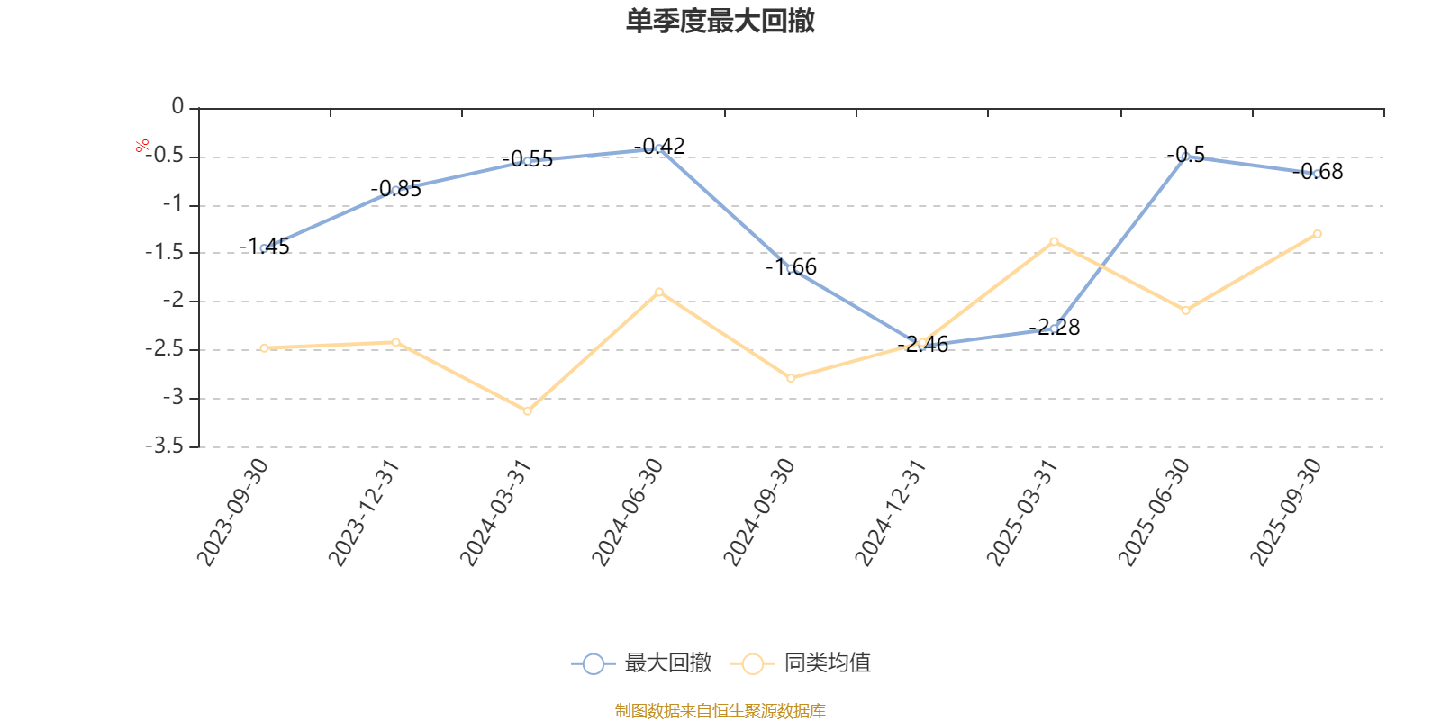 截至10月30日,基金成立以来最大回撤为2.92%。单季度最大回撤出现在2024年四季度,为2.46%。