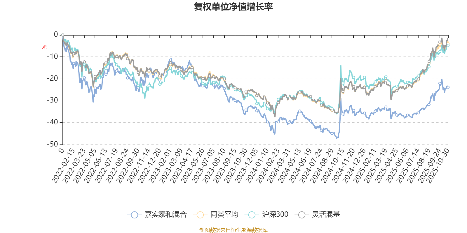 截至10月30日,嘉实泰和混合近三个月复权单位净值增长率为14.19%,位于同类可比基金534/1287;近半年复权单位净值增长率为20.79%,位于同类可比基金731/1287;近一年复权单位净值增长率为17.75%,位于同类可比基金787/1287;近三年复权单位净值增长率为-1.06%,位于同类可比基金1031/1286。