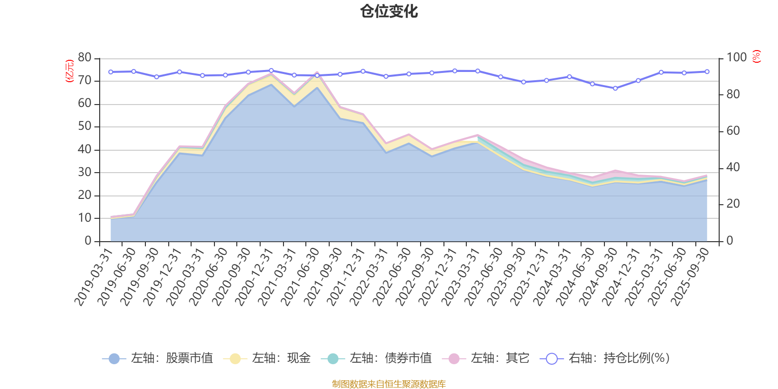 据定期报告数据统计,近三年平均股票仓位为89.66%,同类平均为72.35%。2020年末基金达到93.38%的最高仓位,2024年三季度末最低,为83.64%。
