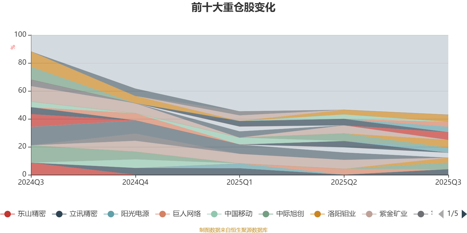 截至2025年三季度末,基金十大重仓股分别是海光信息、中科曙光、新易盛、中际旭创、立讯精密、工业富联、寒武纪、天孚通信、洛阳钼业、生益科技。