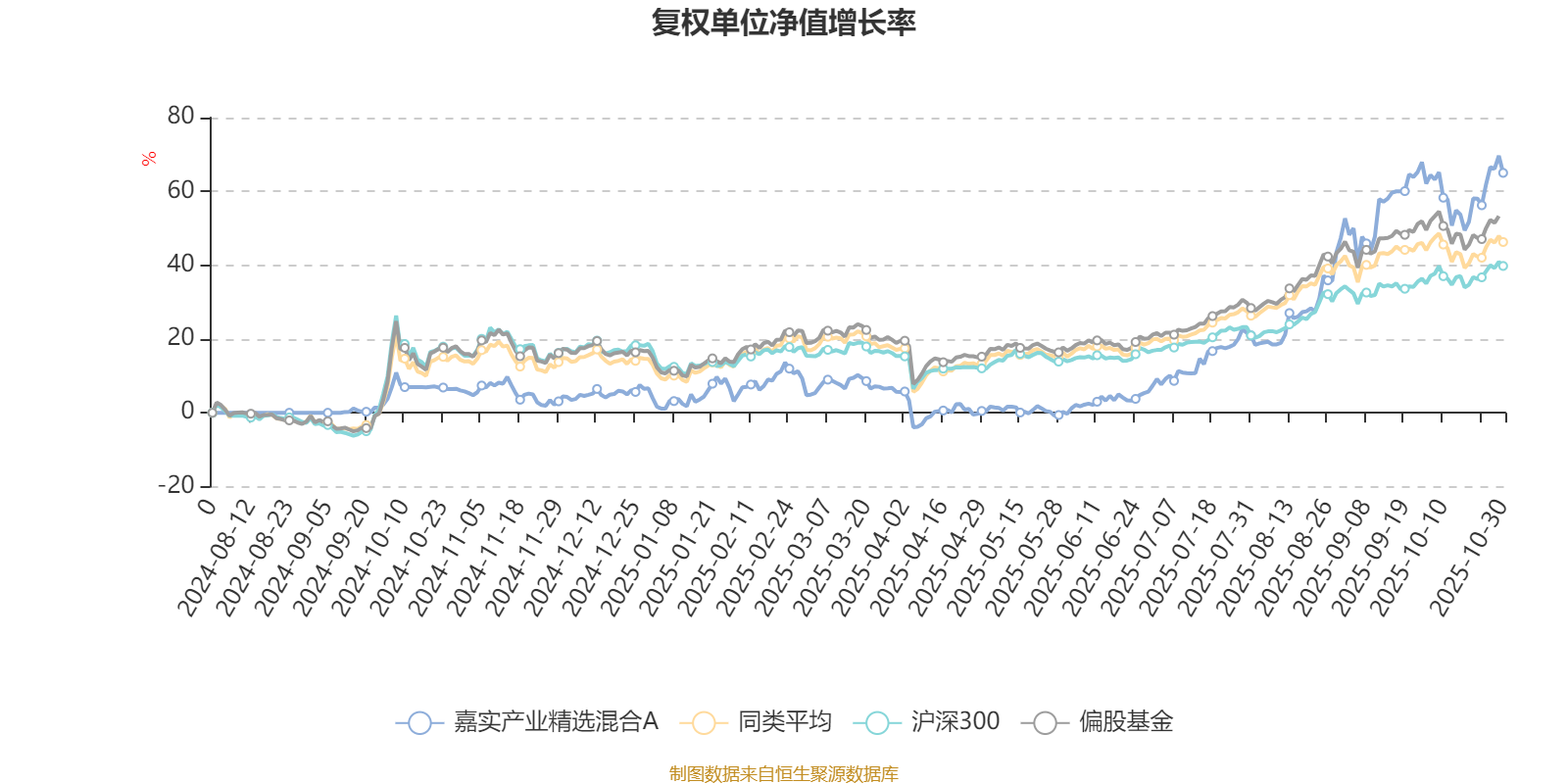 截至10月30日,嘉实产业精选混合A近三个月复权单位净值增长率为35.62%,位于同类可比基金39/689;近半年复权单位净值增长率为64.41%,位于同类可比基金33/688;近一年复权单位净值增长率为55.96%,位于同类可比基金59/658。
