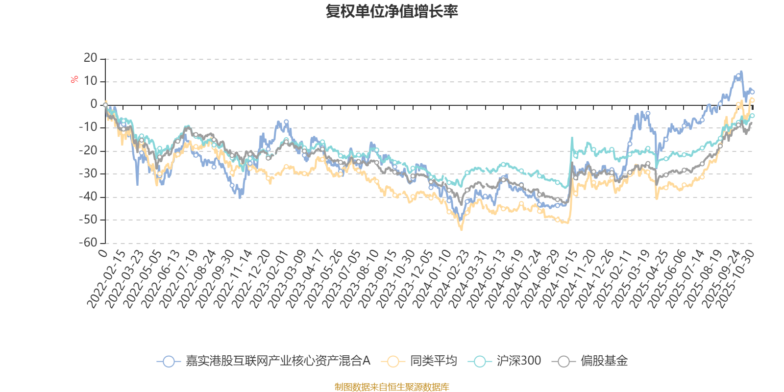 截至10月30日,嘉实港股互联网产业核心资产混合A近三个月复权单位净值增长率为8.75%,位于同类可比基金218/229;近半年复权单位净值增长率为20.29%,位于同类可比基金217/229;近一年复权单位净值增长率为47.39%,位于同类可比基金138/214;近三年复权单位净值增长率为73.01%,位于同类可比基金41/158。