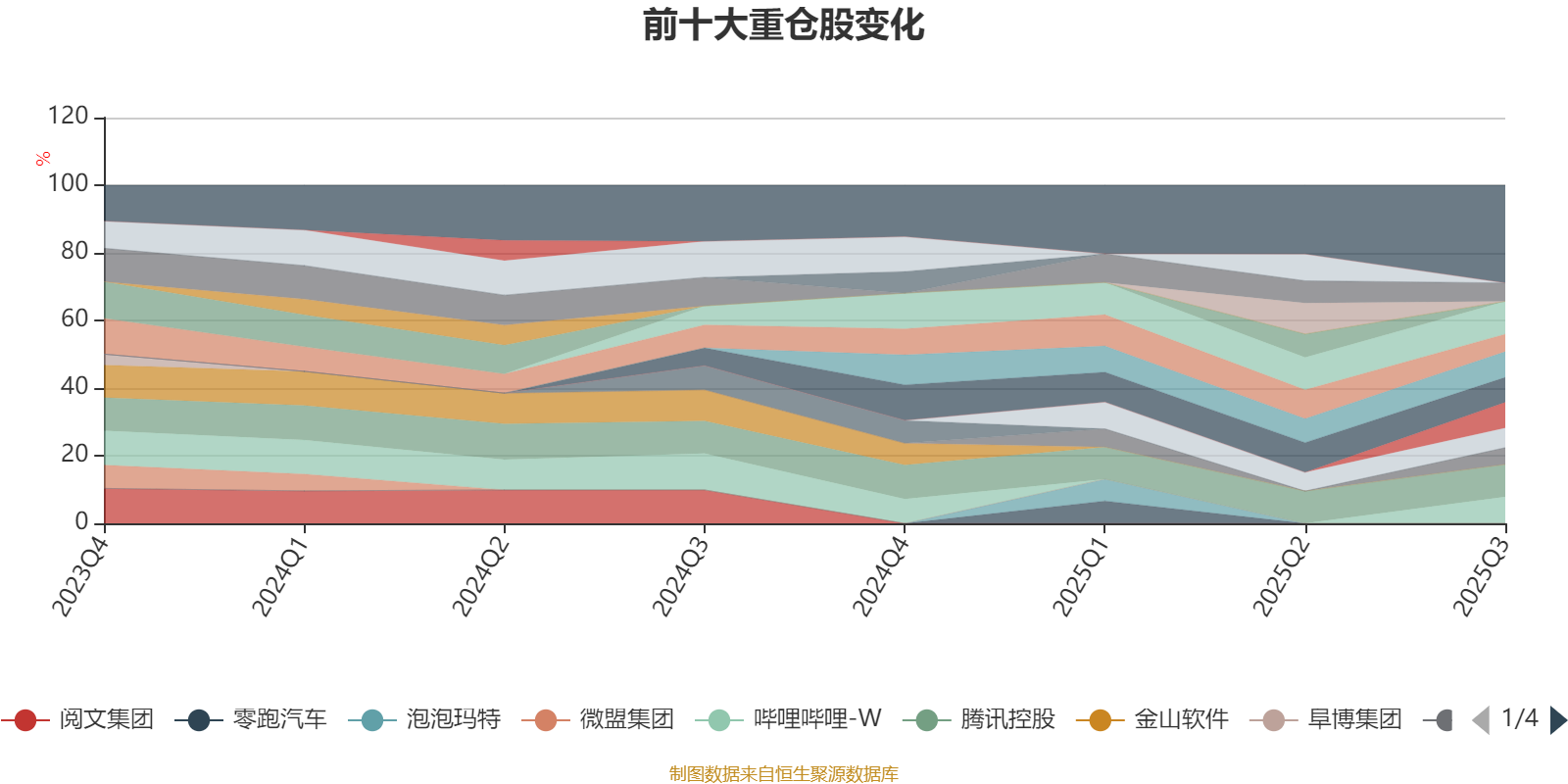 该基金持股集中度较高,近2年前十大重仓股集中度长期超过60%。截至2025年三季度末,基金十大重仓股分别是阿里巴巴-W、腾讯控股、哔哩哔哩-W、中芯国际、贝壳-W、小米集团-W、舜宇光学科技、快手-W、理想汽车-W、猫眼娱乐。