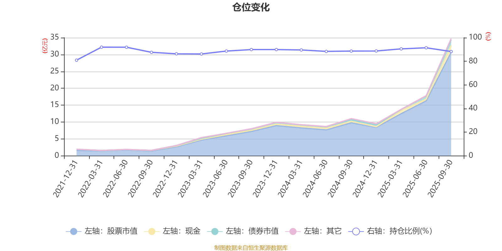 据定期报告数据统计,近三年平均股票仓位为88.86%,同类平均为86.77%。2022年一季度末基金达到91.96%的最高仓位,2021年末最低,为80.93%。