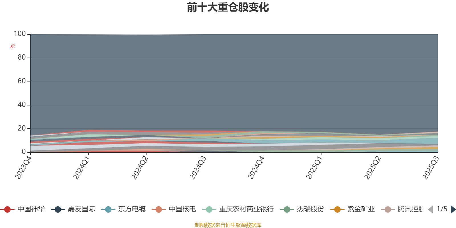 截至2025年三季度末,基金十大重仓股分别是宁德时代、紫金矿业、腾讯控股、杰瑞股份、徐工机械、九号公司、东方电缆、中芯国际、ST华通、生益科技。