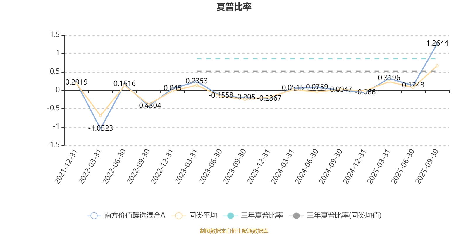 截至9月30日,基金近三年夏普比率为0.858,位于同类可比基金13/119。