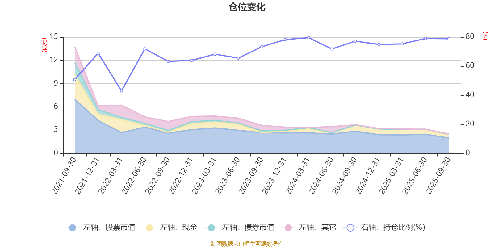 据定期报告数据统计,近三年平均股票仓位为73.83%,同类平均为67.37%。2024年一季度末基金达到79.59%的最高仓位,2022年一季度末最低,为42.93%。