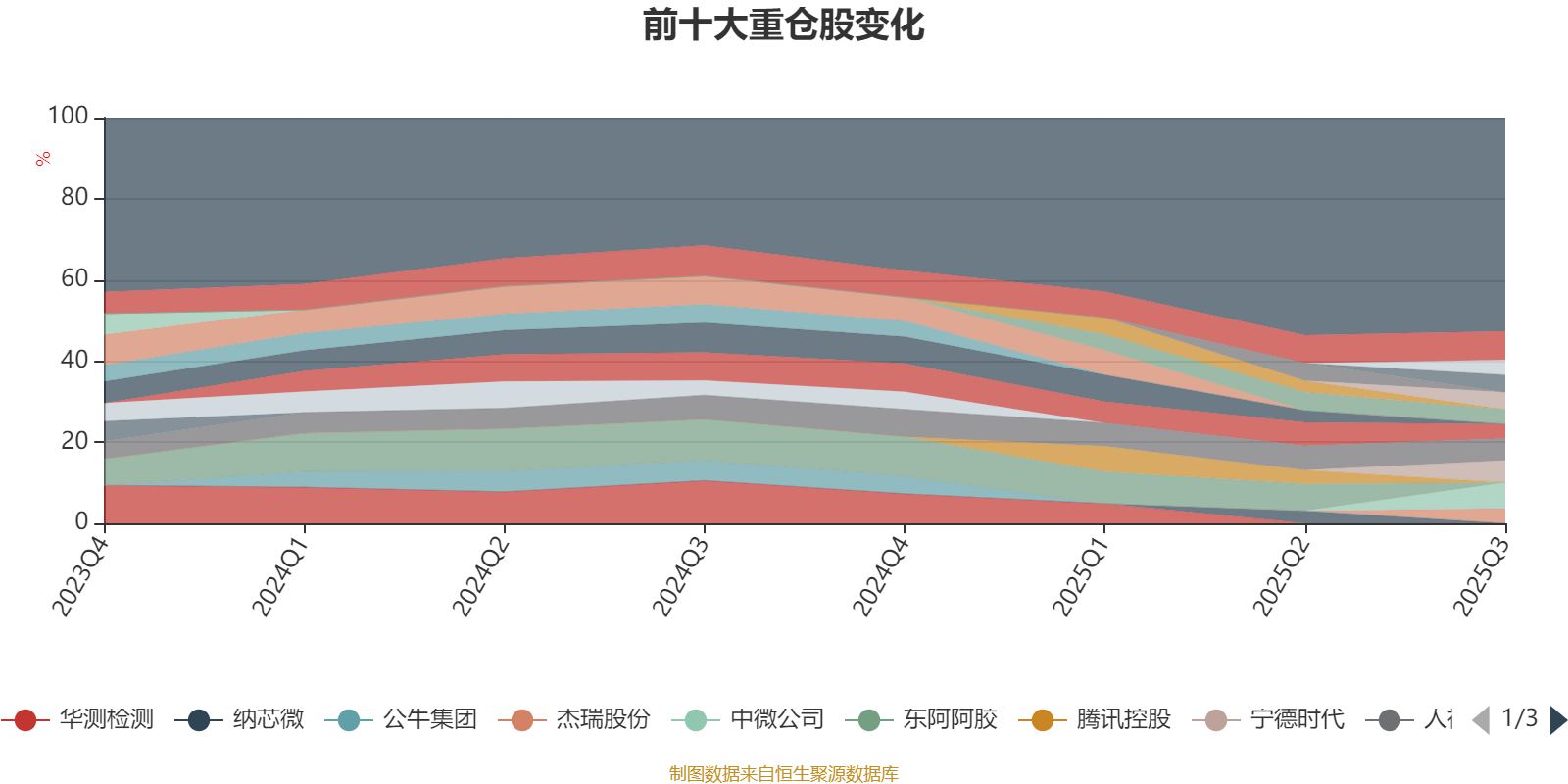 截至2025年三季度末,基金十大重仓股分别是惠泰医疗、中微公司、宁德时代、人福医药、阿里巴巴-W、思特威、杰瑞股份、水晶光电、广联达、招商银行。