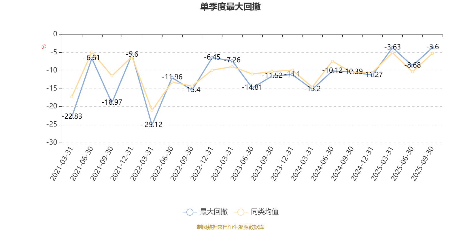 截至10月29日,基金近三年最大回撤为41.87%,同类可比基金排名105/124。单季度最大回撤出现在2022年一季度,为25.12%。