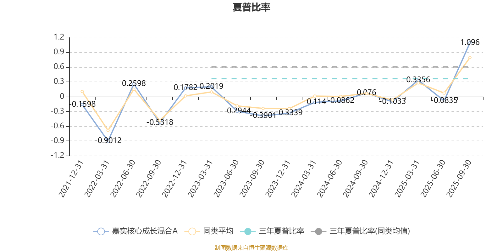 截至9月30日,基金近三年夏普比率为0.3687,位于同类可比基金96/125。