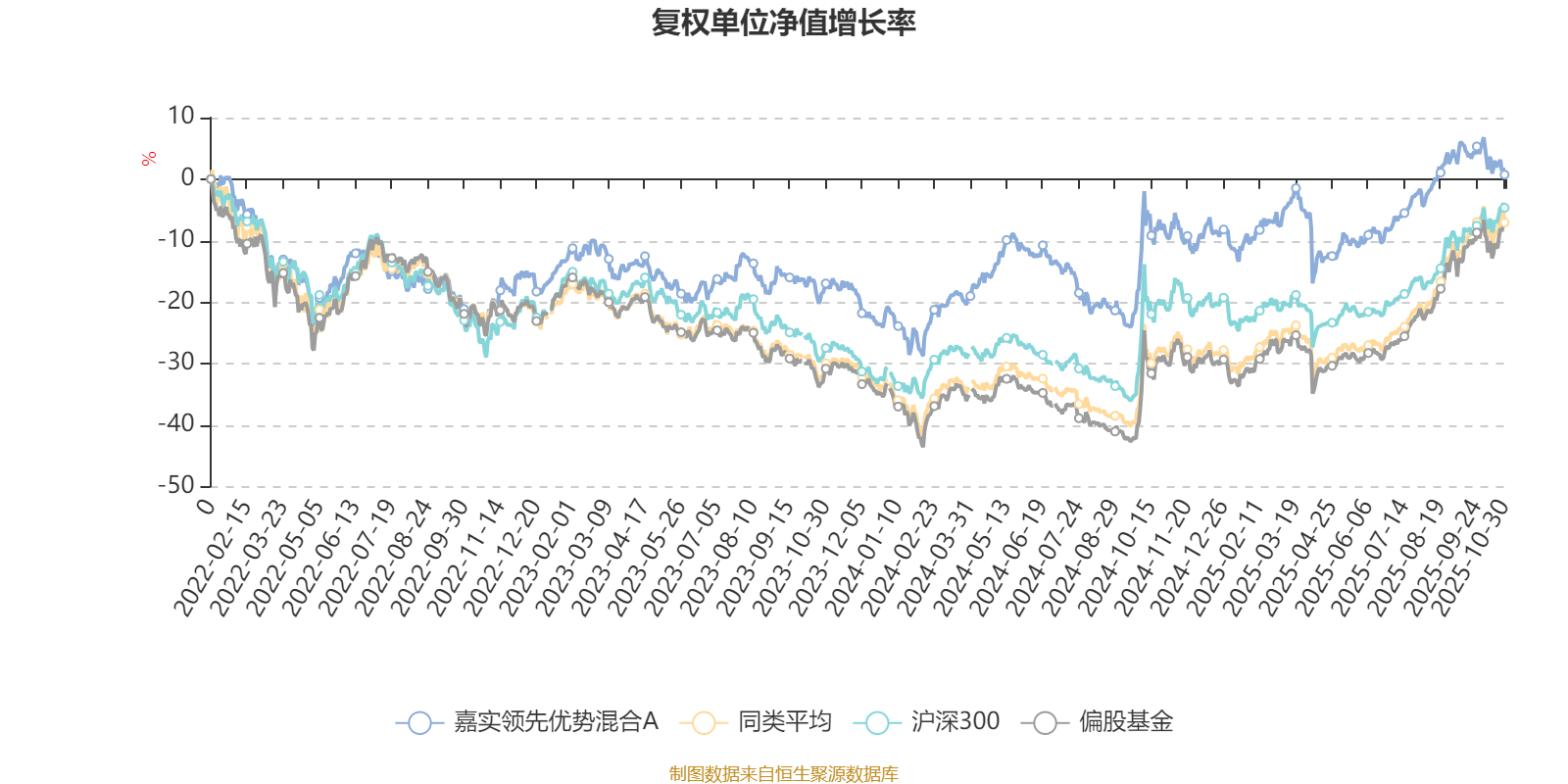 截至10月30日,嘉实领先优势混合A近三个月复权单位净值增长率为2.86%,位于同类可比基金115/130;近半年复权单位净值增长率为15.54%,位于同类可比基金108/130;近一年复权单位净值增长率为10.89%,位于同类可比基金118/130;近三年复权单位净值增长率为32.00%,位于同类可比基金49/124。