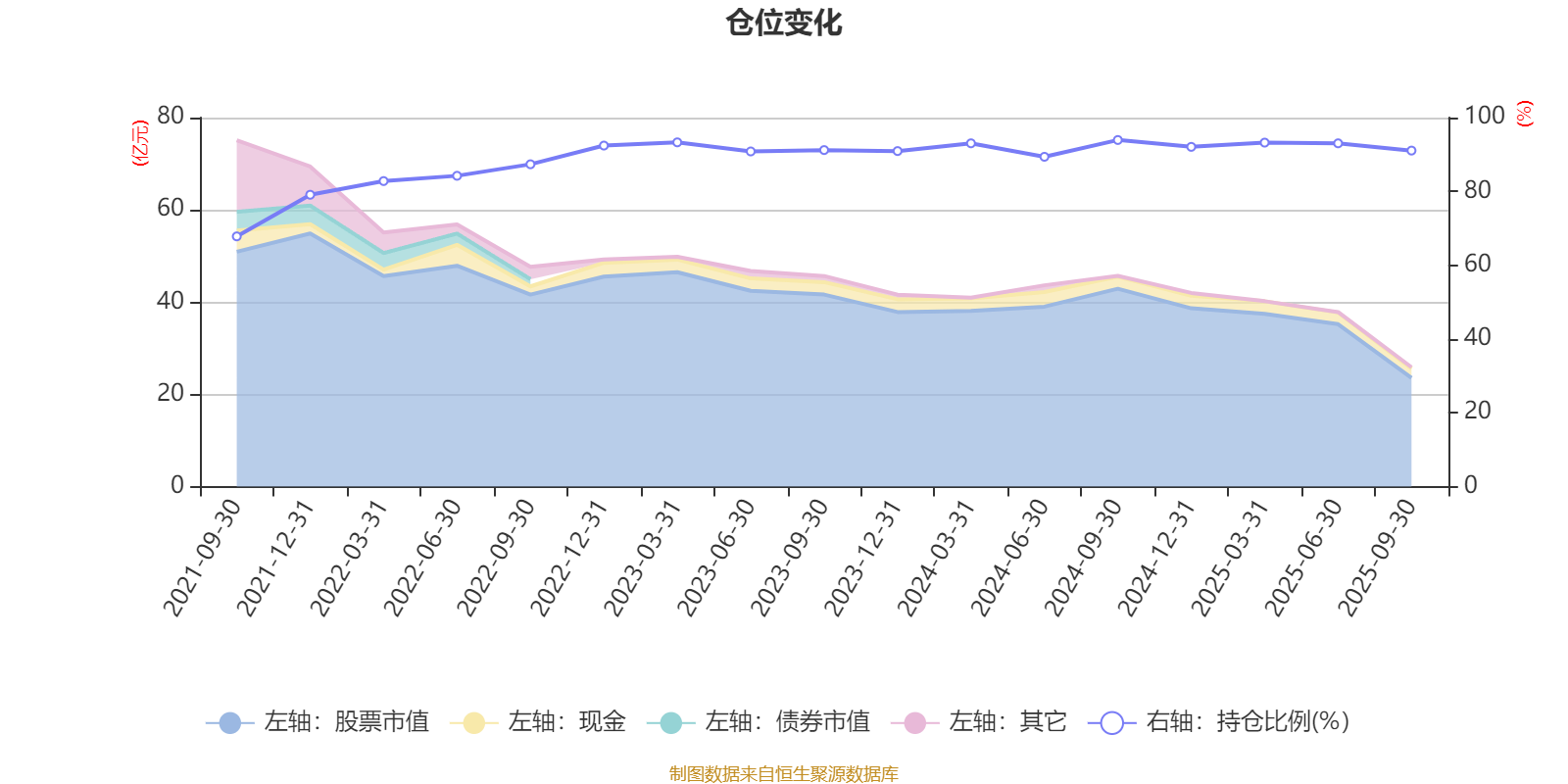 据定期报告数据统计,近三年平均股票仓位为92.03%,同类平均为86.15%。2024年三季度末基金达到93.93%的最高仓位,2021年三季度末最低,为67.81%。