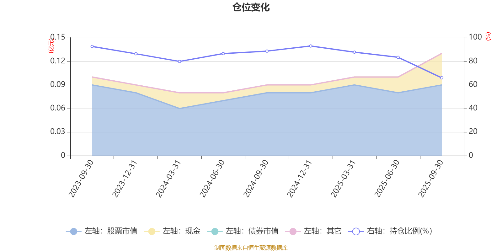 据定期报告数据统计,成立以来平均股票仓位为84.88%,同类平均为83.73%。2024年末基金达到92.94%的最高仓位,2025年三季度末最低,为65.98%。
