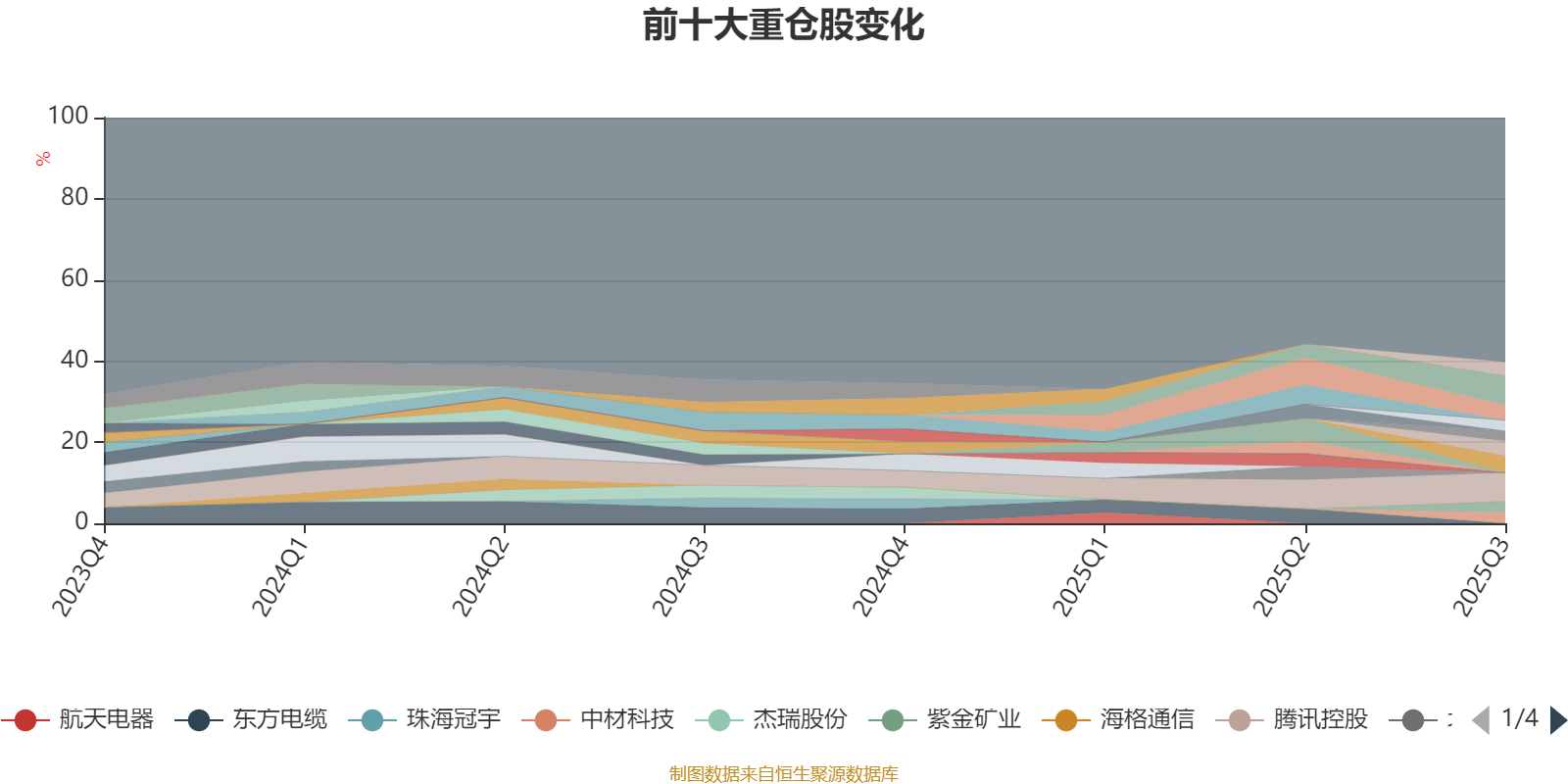 截至2025年三季度末,基金十大重仓股分别是快手-W、腾讯控股、澜起科技、阿里巴巴-W、恒玄科技、兆易创新、中材科技、紫金矿业、海光信息、徐工机械。