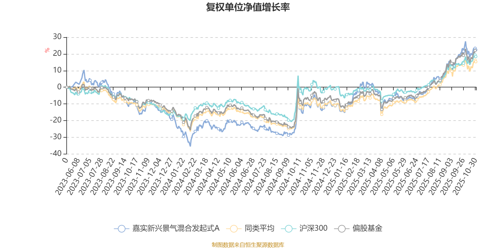 截至10月30日,嘉实新兴景气混合发起式A近三个月复权单位净值增长率为16.93%,位于同类可比基金257/689;近半年复权单位净值增长率为31.29%,位于同类可比基金273/688;近一年复权单位净值增长率为37.65%,位于同类可比基金190/658。
