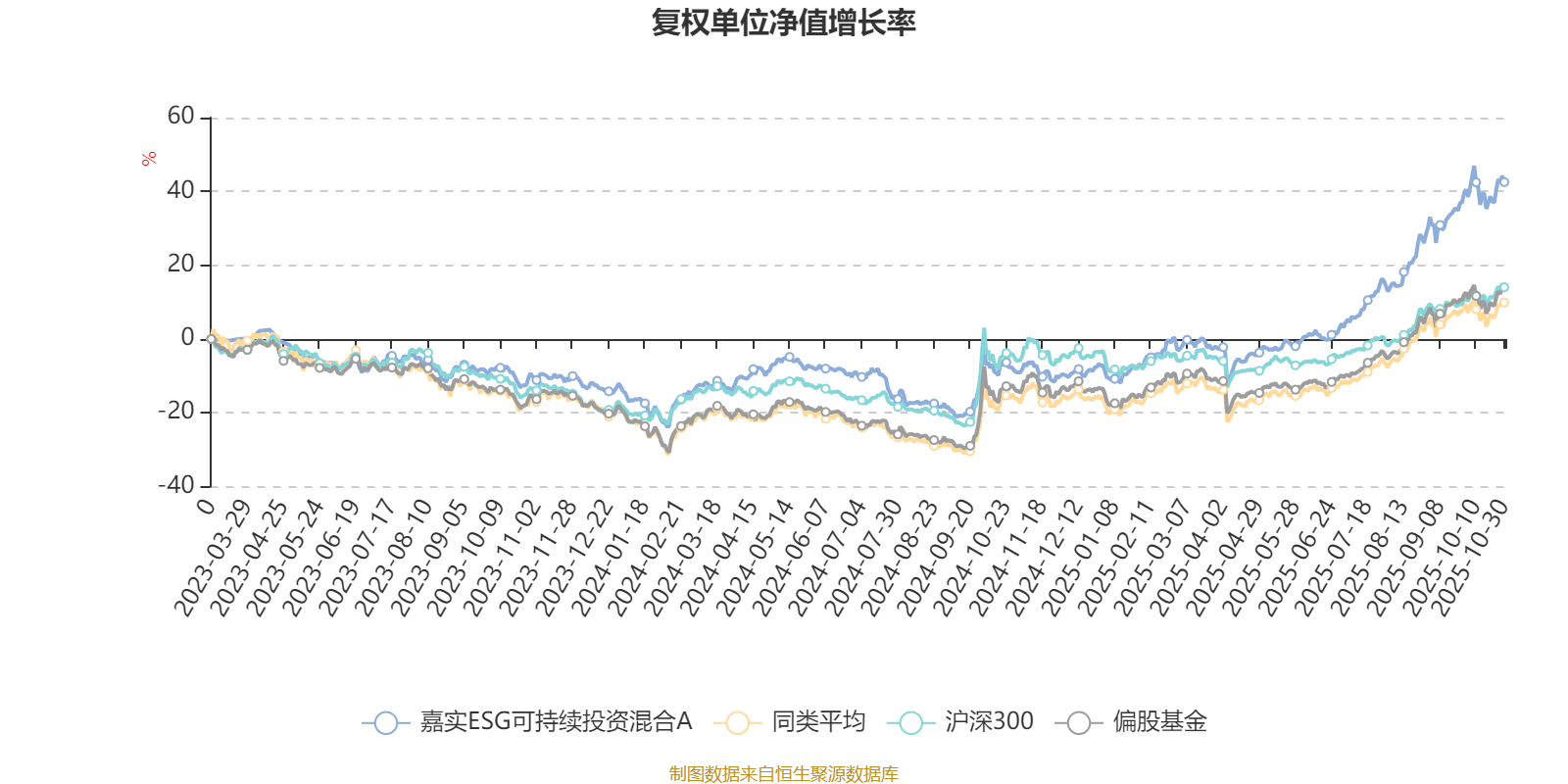 截至10月30日,嘉实ESG可持续投资混合A近三个月复权单位净值增长率为23.08%,位于同类可比基金150/621;近半年复权单位净值增长率为46.82%,位于同类可比基金103/621;近一年复权单位净值增长率为56.59%,位于同类可比基金75/611。