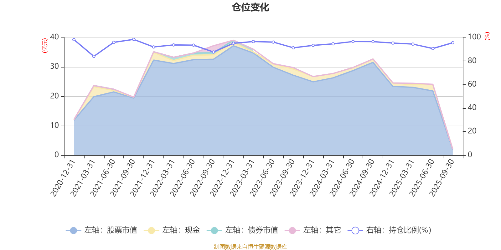 据定期报告数据统计,近三年平均股票仓位为94.65%,同类平均为86.15%。2021年三季度末基金达到98.4%的最高仓位,2021年一季度末最低,为83.96%。