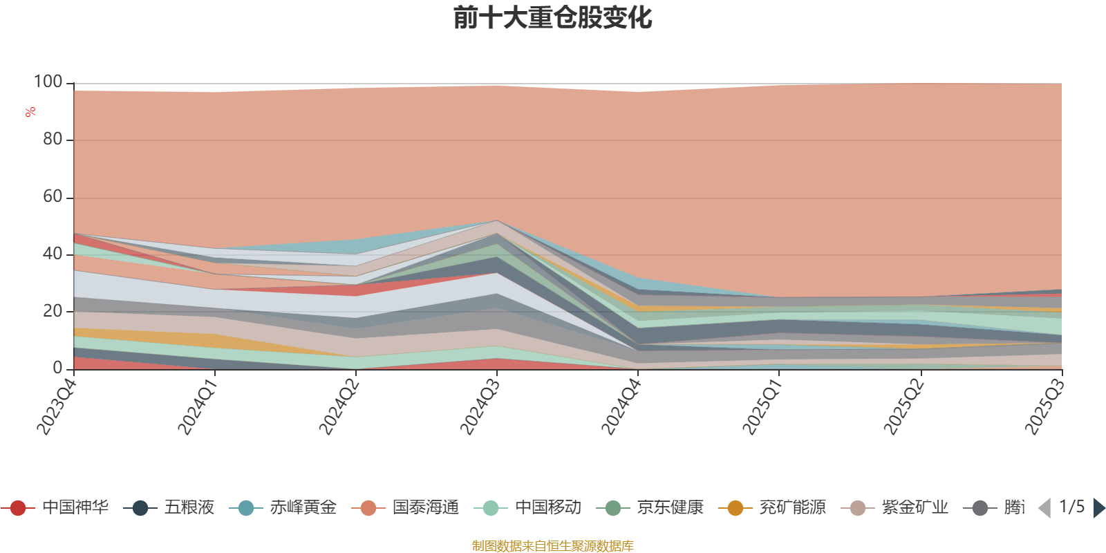 截至2025年三季度末,基金十大重仓股分别是中芯国际、紫金矿业、腾讯控股、阿里巴巴-W、小米集团-W、中国平安、吉利汽车、华润置地、京东方A、国泰海通。