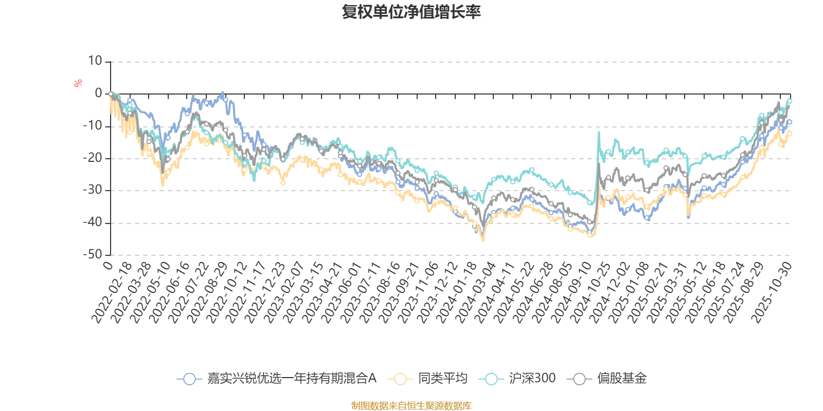 截至10月30日,嘉实兴锐优选一年持有期混合A近三个月复权单位净值增长率为14.34%,位于同类可比基金137/265;近半年复权单位净值增长率为32.21%,位于同类可比基金109/265;近一年复权单位净值增长率为38.25%,位于同类可比基金75/265;近三年复权单位净值增长率为10.19%,位于同类可比基金168/253。