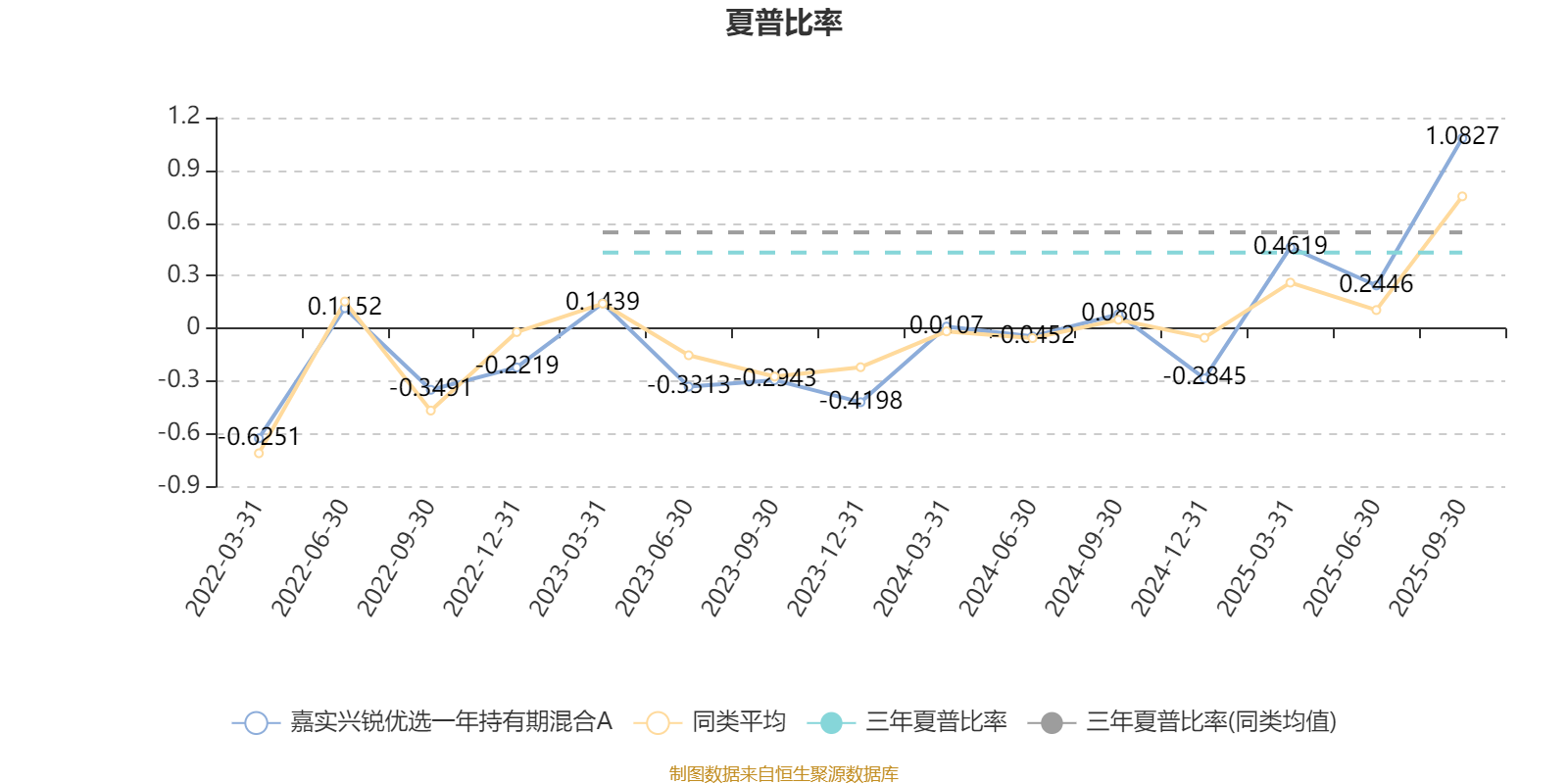 截至9月30日,基金近三年夏普比率为0.4317,位于同类可比基金169/252。