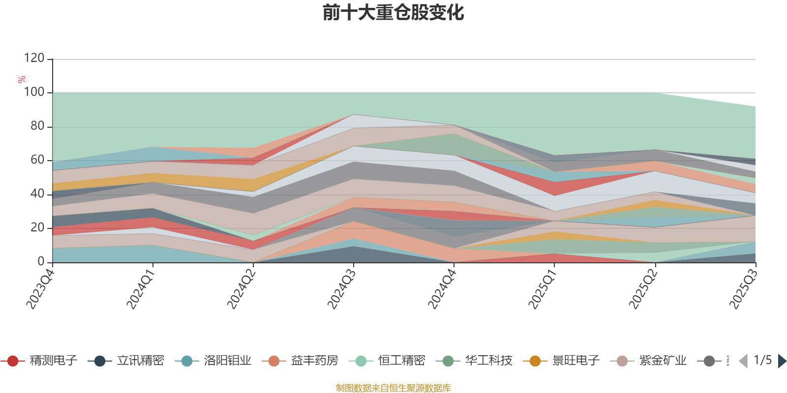 该基金持股集中度较高。截至2025年三季度末,基金十大重仓股分别是紫金矿业、康诺亚-B、洛阳钼业、固生堂、立讯精密、恒瑞医药、山东黄金、中国电信、华友钴业、成都银行。