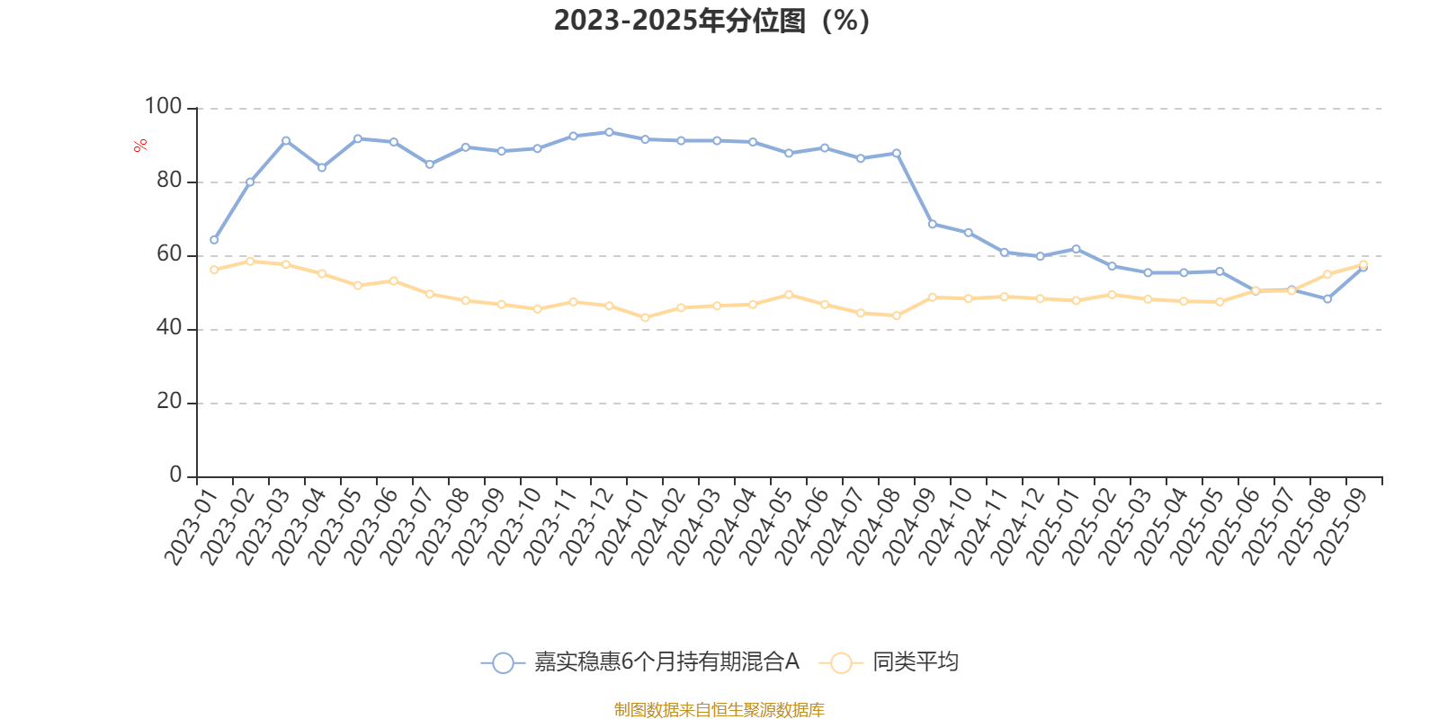 通过所选区间该基金净值增长率分位图,可以观察该基金与同类基金业绩比较情况。图为坐标原点到区间内某时点的净值增长率在同类基金中的分位数。