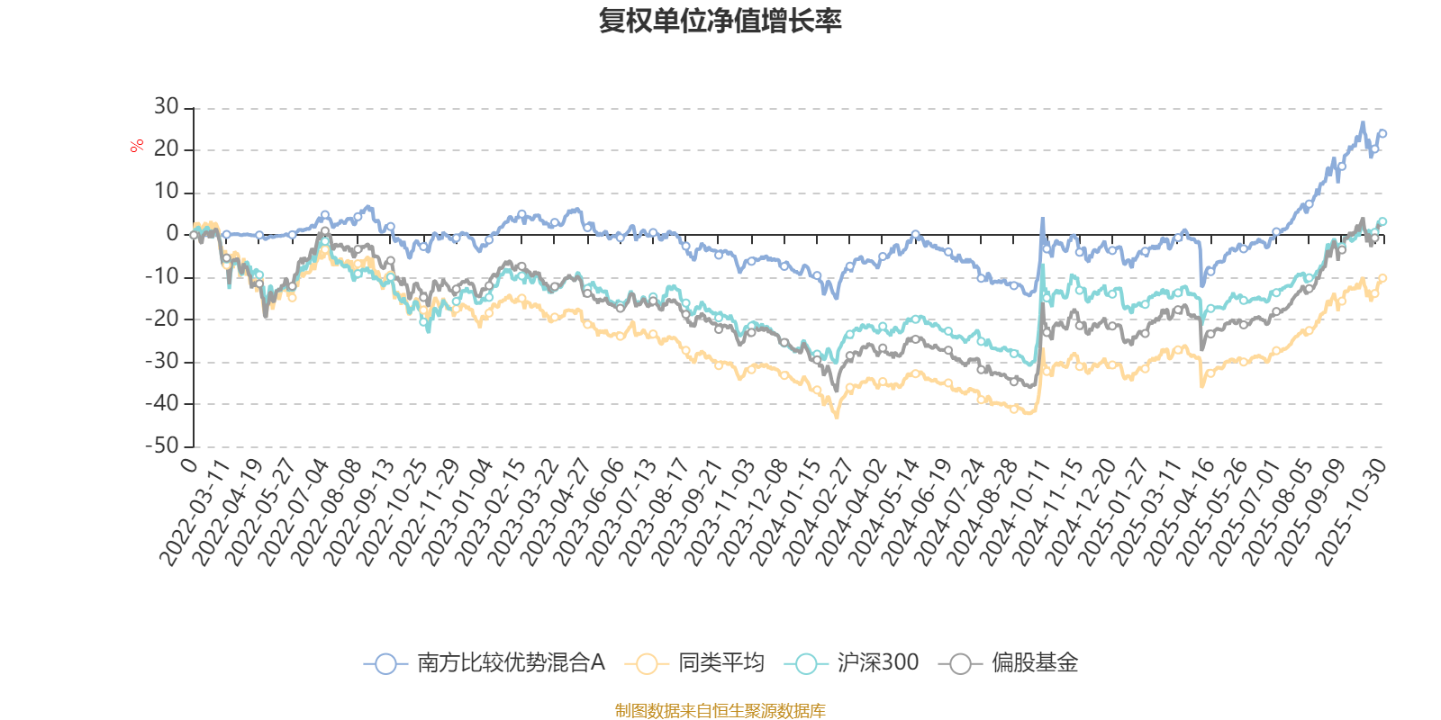 截至10月30日,南方比较优势混合A近三个月复权单位净值增长率为15.80%,位于同类可比基金281/689;近半年复权单位净值增长率为32.14%,位于同类可比基金276/688;近一年复权单位净值增长率为28.37%,位于同类可比基金329/657;近三年复权单位净值增长率为29.03%,位于同类可比基金110/364。