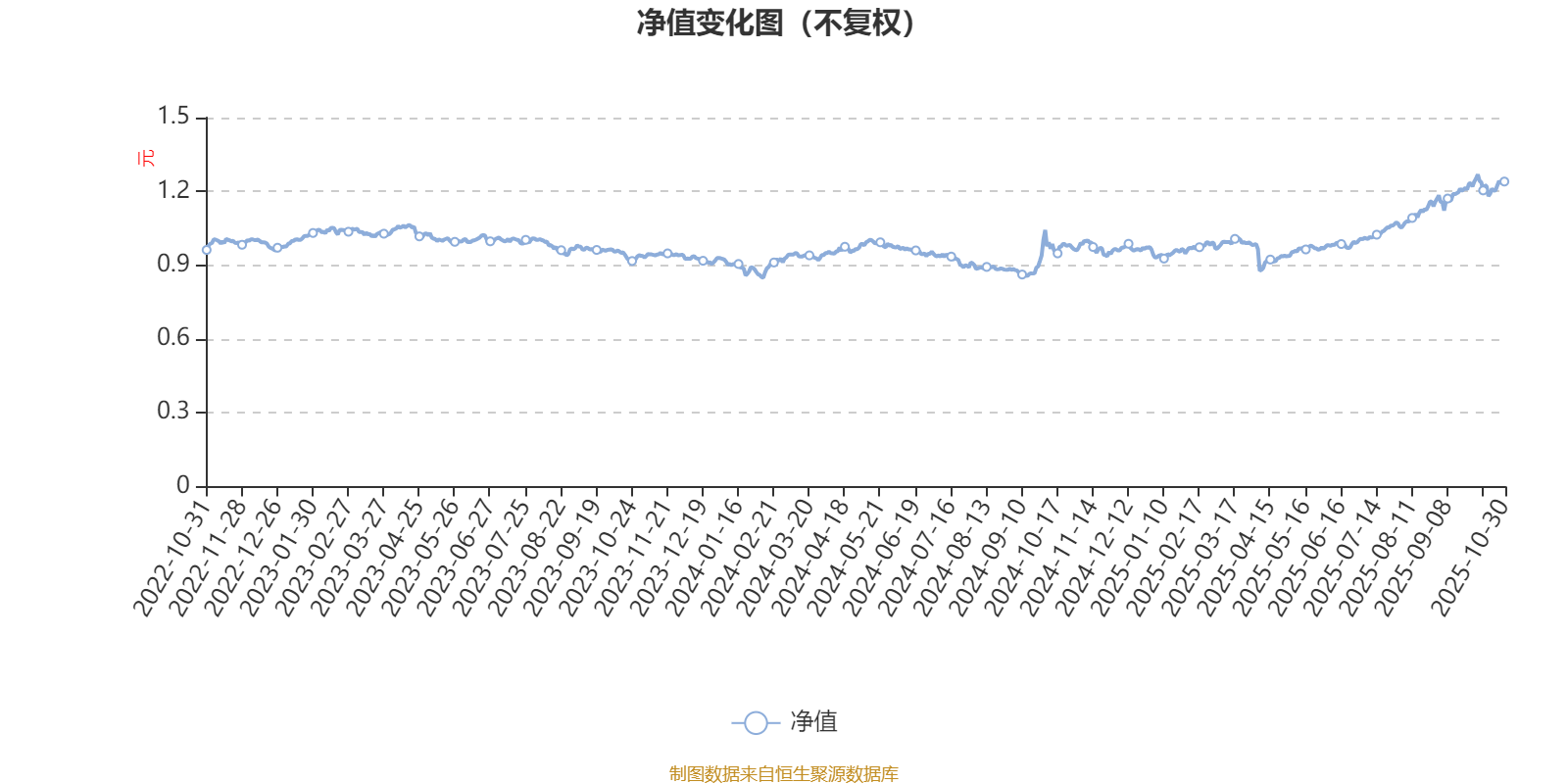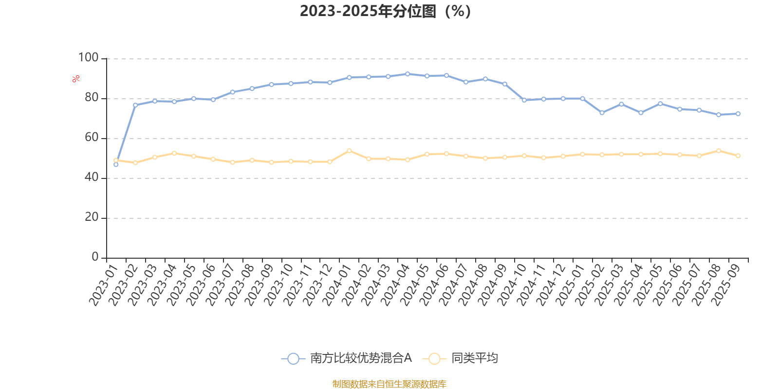 通过所选区间该基金净值增长率分位图,可以观察该基金与同类基金业绩比较情况。图为坐标原点到区间内某时点的净值增长率在同类基金中的分位数。