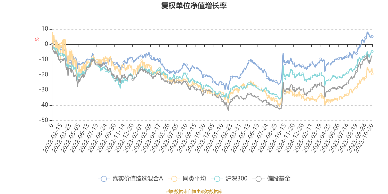 截至10月30日,嘉实价值臻选混合A近三个月复权单位净值增长率为13.03%,位于同类可比基金33/49;近半年复权单位净值增长率为21.86%,位于同类可比基金36/49;近一年复权单位净值增长率为19.88%,位于同类可比基金36/42;近三年复权单位净值增长率为23.81%,位于同类可比基金20/29。