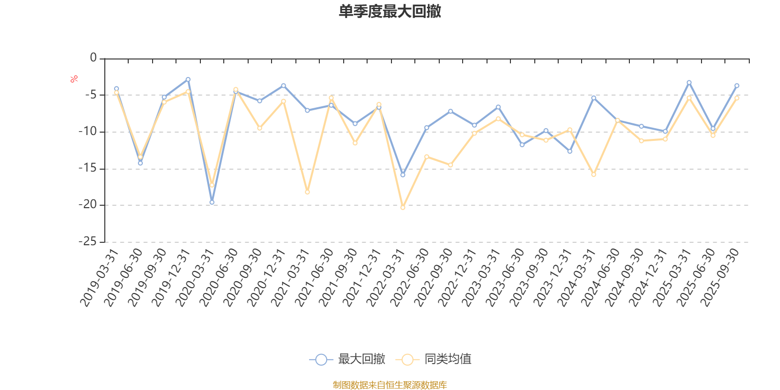 截至10月29日,基金近三年最大回撤为25.29%,同类可比基金排名38/251。单季度最大回撤出现在2020年一季度,为19.58%。