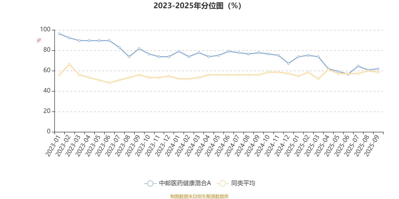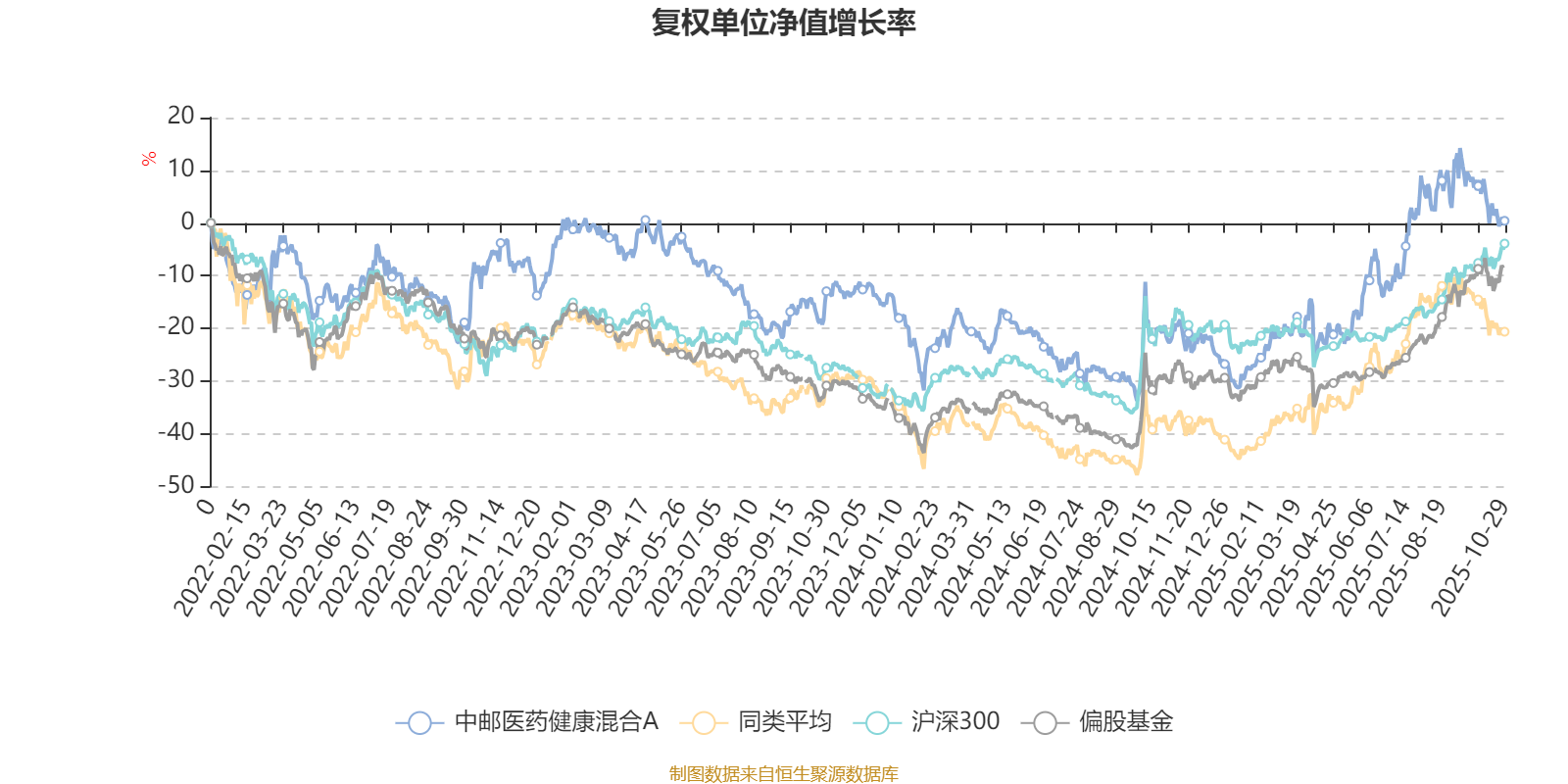 截至10月29日,中邮医药健康混合A近三个月复权单位净值增长率为-7.87%,位于同类可比基金55/106;近半年复权单位净值增长率为26.52%,位于同类可比基金26/104;近一年复权单位净值增长率为27.87%,位于同类可比基金52/101;近三年复权单位净值增长率为11.43%,位于同类可比基金34/75。