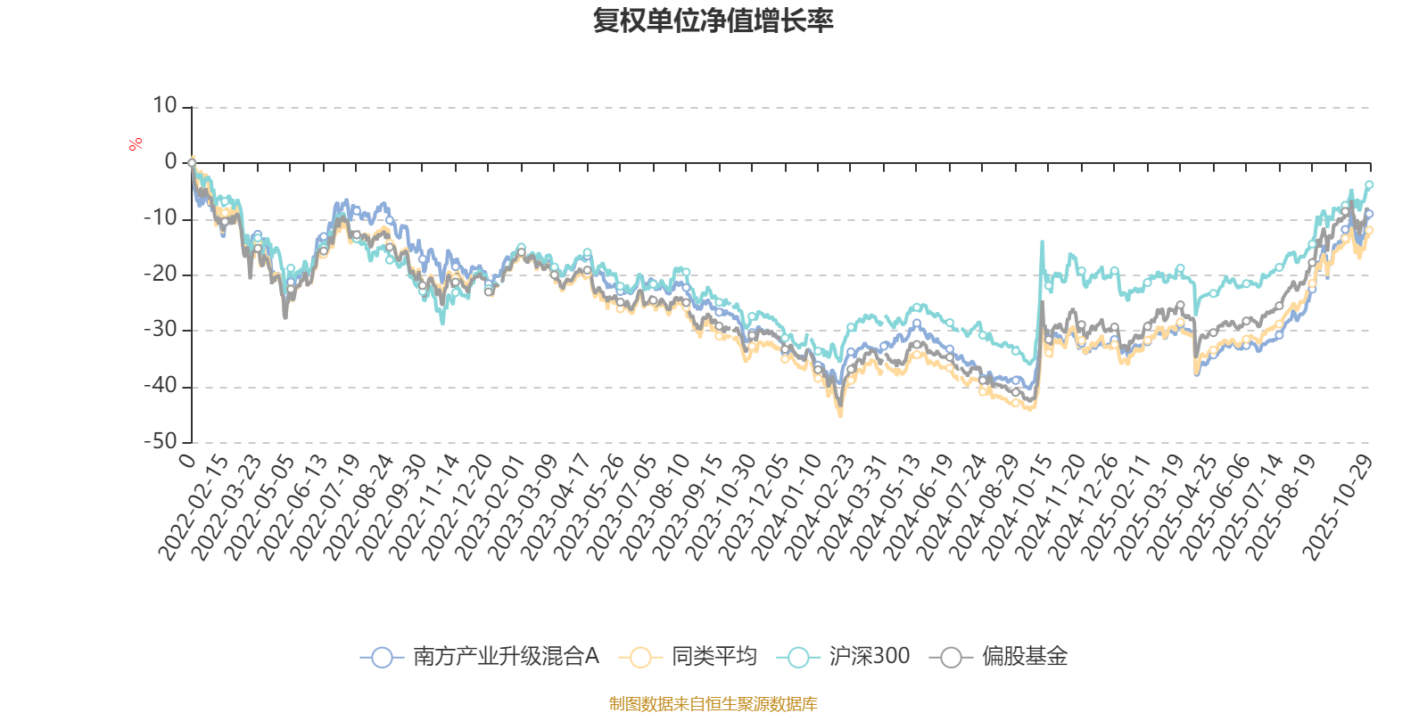 截至10月29日,南方产业升级混合A近三个月复权单位净值增长率为23.37%,位于同类可比基金40/185;近半年复权单位净值增长率为38.28%,位于同类可比基金58/185;近一年复权单位净值增长率为32.59%,位于同类可比基金79/181;近三年复权单位净值增长率为15.12%,位于同类可比基金115/175。