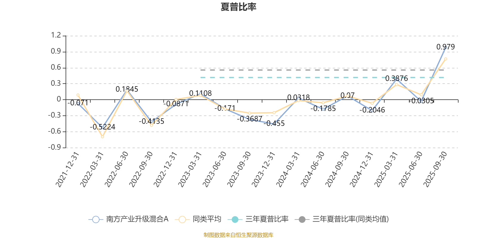 截至9月30日,基金近三年夏普比率为0.4164,位于同类可比基金129/177。