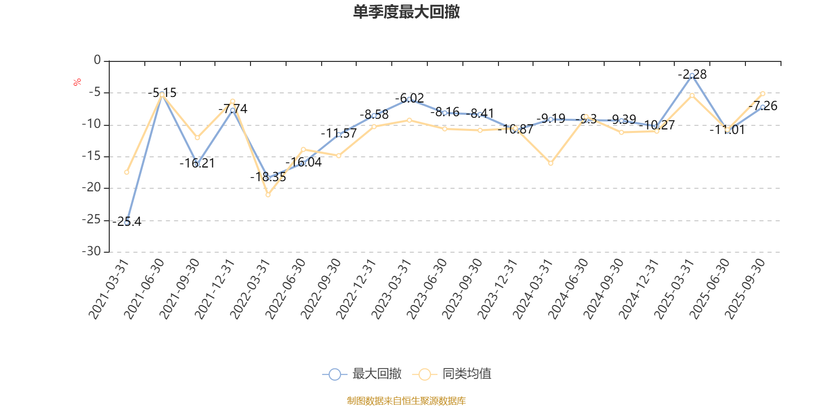 截至10月29日,基金近三年最大回撤为29.8%,同类可比基金排名39/176。单季度最大回撤出现在2021年一季度,为25.4%。