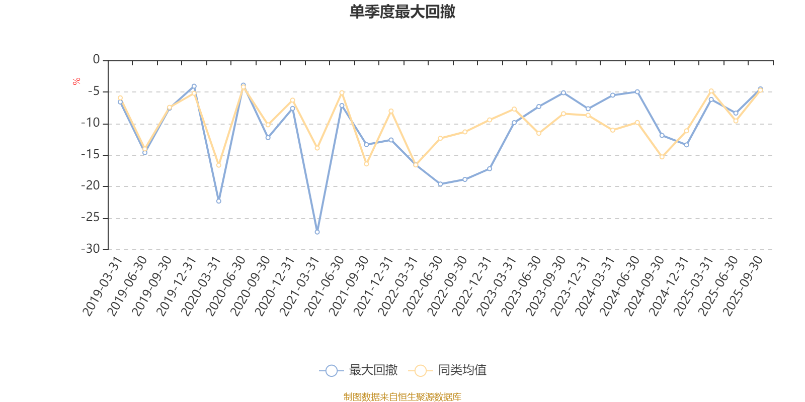 截至10月30日,基金近三年最大回撤为25.58%,同类可比基金排名9/29。单季度最大回撤出现在2021年一季度,为27.23%。