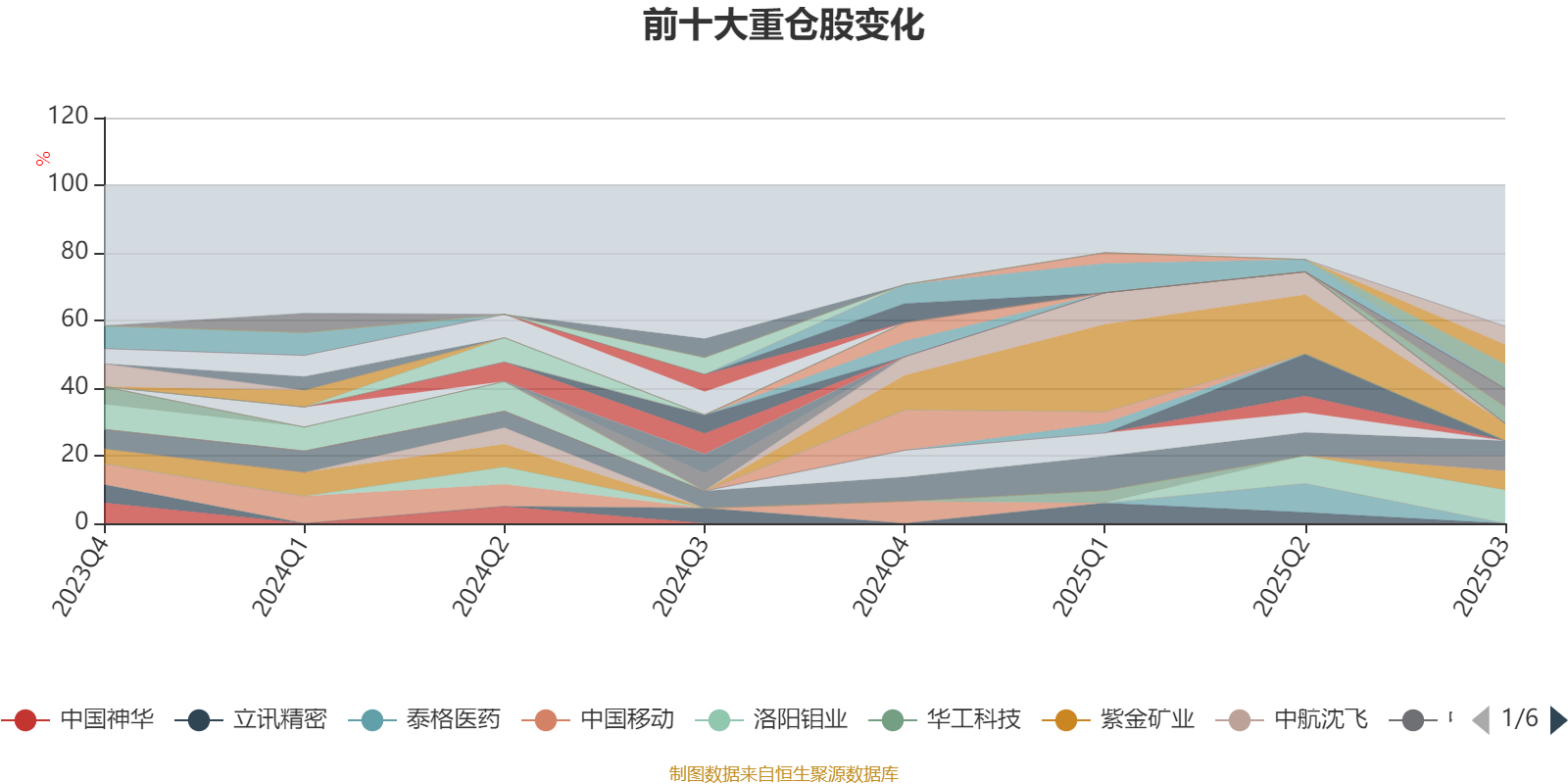 该基金持股集中度较高。截至2025年三季度末,基金十大重仓股分别是洛阳钼业、山东黄金、华友钴业、紫金矿业、兴发集团、新安股份、建设银行、中矿资源、中微公司、北方华创。