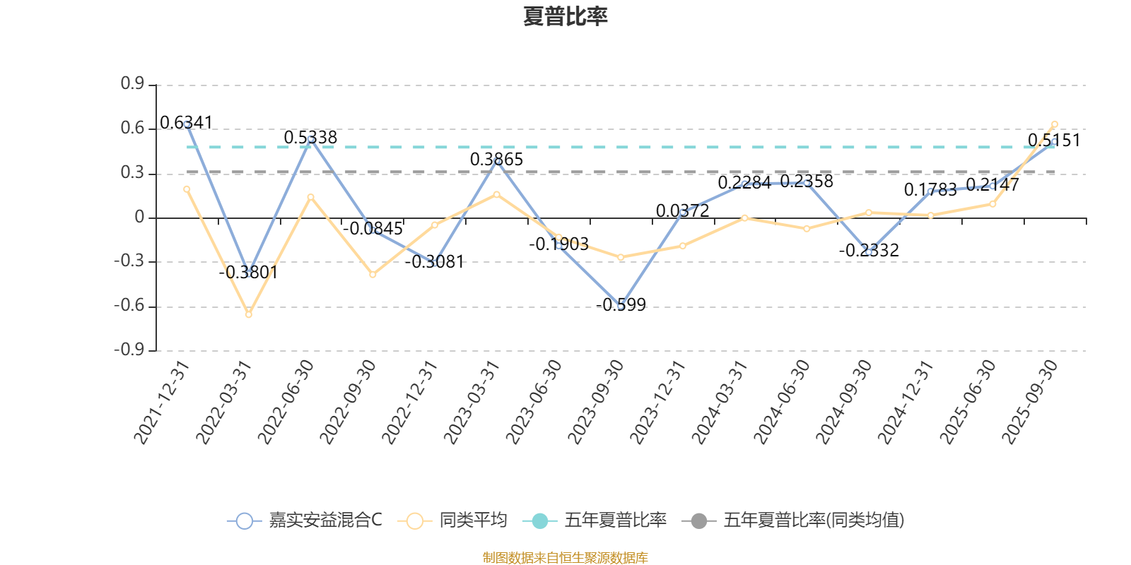 截至9月30日,基金近三年夏普比率为0.3453,位于同类可比基金886/1285。