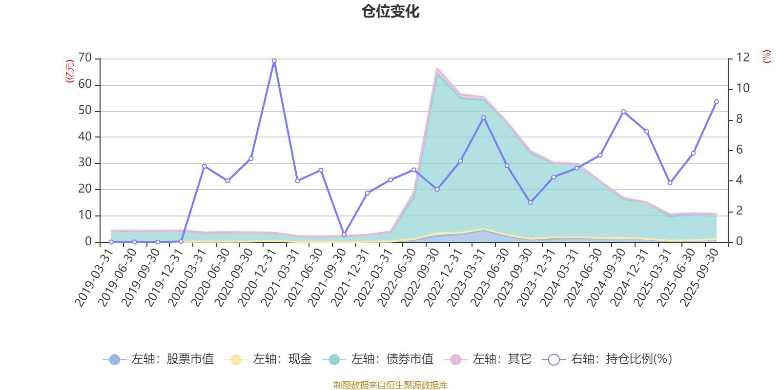 基金管理人在三季报中表示,本组合三季度权益仓位维持中等偏高水平,但我们确实低估了市场风险偏好的持续高企,在高弹性板块配置比重不足,三季度中后期减持了低波持仓,增加了趋势向好的金属板块配置。