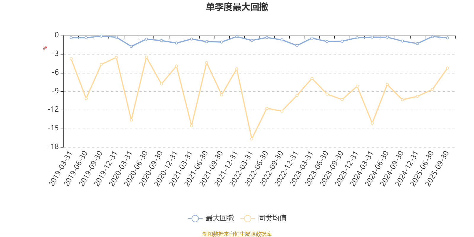 截至10月29日,基金近三年最大回撤为1.82%,同类可比基金排名10/1274。单季度最大回撤出现在2020年一季度,为1.75%。